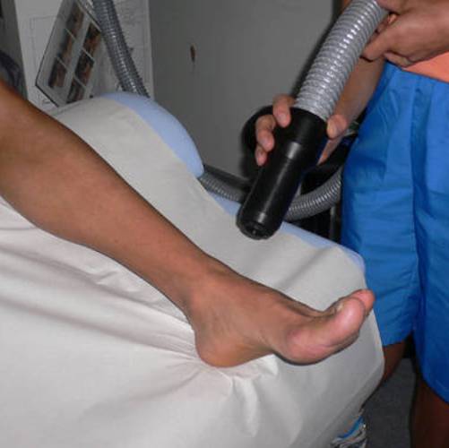 Długie zabiegi 5-10 minut w połączeniu z lekkim nadmuchem powietrza pozwalają uzyskać zmniejszenie napięcia mięśniowego i redukcję obrzęków. Zmniejszenie obrzęków i stanów zapalnych pomaga w efektywnym leczeniu pacjentów z aktywną chorobą zwyrodnieniową stawów, zapaleniem stawów, reumatyzmem, zapaleniem ścięgien oraz w stanach pooperacyjnych.
