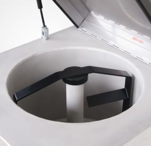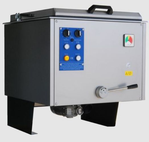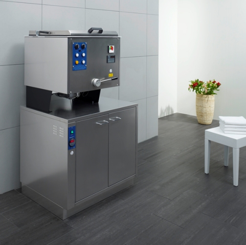 Urządzenie do przygotowywania i przechowywania okładów z fangoparafiny lub parafiny, złożone z mieszalnika do podgrzewania i mieszania tworzywa do okładów oraz szafki do przechowywania gotowych okładów.