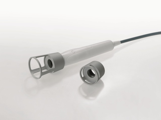 2 różne nasadki dystansowe utrzymują aplikator laserowy w określonej odległości od skóry. Nasadki można łatwo i szybko nakładać na aplikator lub wymieniać.