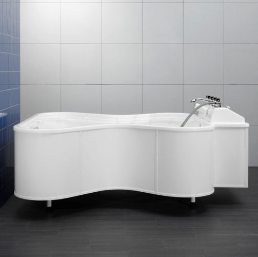Napełnianie wanny ciepłą i zimną wodą następuje poprzez baterię o dużej przepustowości (DN25), co zapewnia krótki czas napełniania, a zastosowany spust o dużym rozmiarze zapewnia szybkie opróżnienie wanny.
